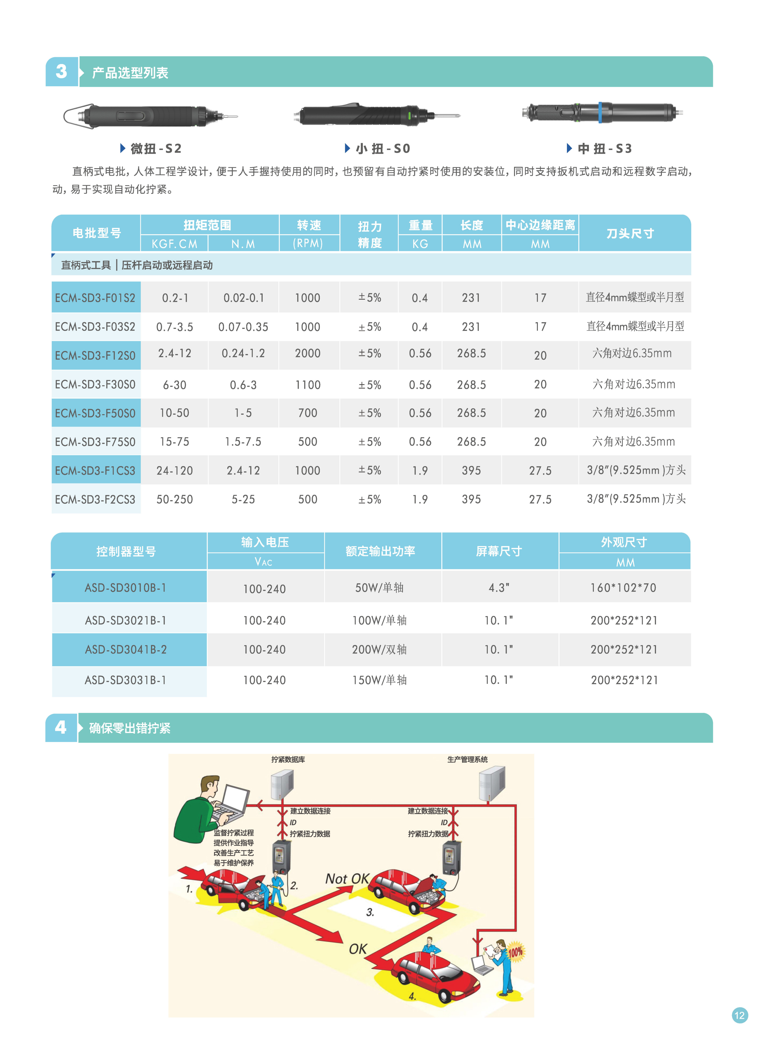 臺(tái)達(dá)(Delta)高精度智能電批 ECM-SD3,內(nèi)置高精度扭矩傳感器,在ISO5393國際標(biāo)準(zhǔn)下(6個(gè)σ)可實(shí)現(xiàn)5%擰緊精度,并提供扭力數(shù)據(jù),實(shí)現(xiàn)對(duì)擰緊過程的實(shí)時(shí)監(jiān)控,具有25萬次擰緊免維護(hù)的高耐用性
